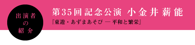 定例公演の他、創作能(かぐや姫、オセロー、仲麻呂など)、海外公演(イギリス、スペイン、シンガポール他多数)や他ジャンルとの共演などを積極的に行う。2003年「一石仙人(アインシュタイン)」(多田富雄作)を初演。2005年アンデルセン作「ある母親の物語」イプセン作「人形の家」から「2人のノーラ」主演、北欧公演を行う。今年もヨーロッパ、アジア各国に招聘される。